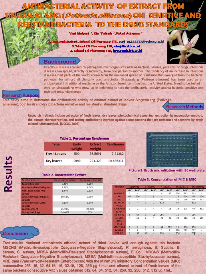 Tema utama riset mama, tentang uji aktivitas antibakteri pada tanaman singawalang atau nama latinyya (petiveria aliaceae).