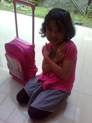 "Mama , tasnya yang bisa di dorong, fifi dah bosen tas yang dulu"